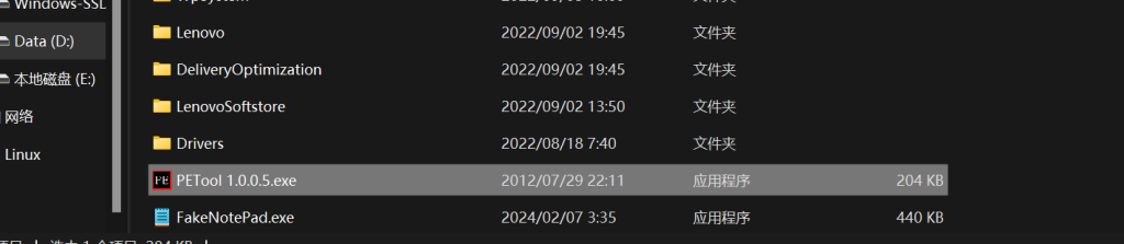 char* FilePath = (char*)"D:/PETool 1.0.0.5.exe"; //打开的PE文件绝对路径