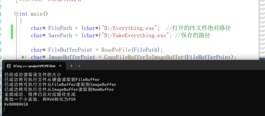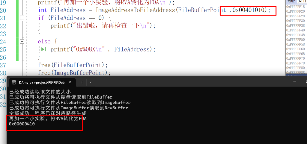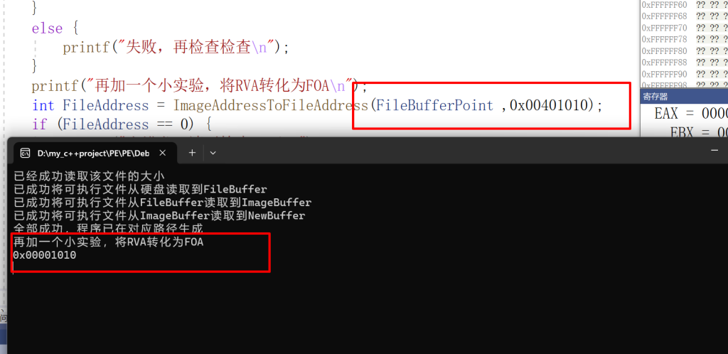 printf("再加一个小实验,将RVA转化为FOA\n");