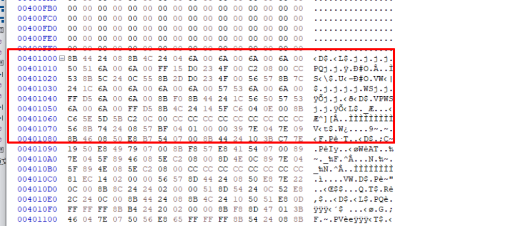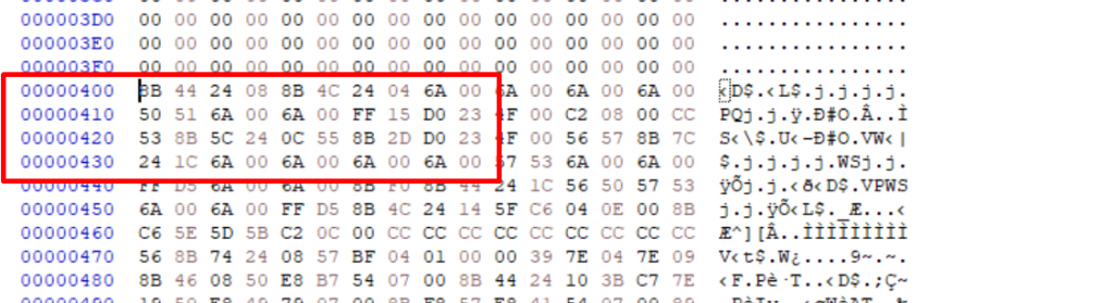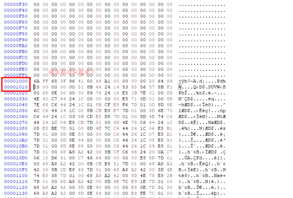 然后分别用二进制编辑器查看在硬盘上的 exe 和在内存中的 exe