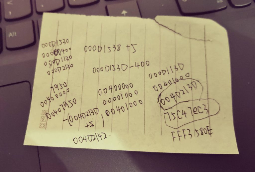 然后就开始算哇,上面是算好的,其实就是算 E8 后面 4 个字节和 E9 后面四个字节,但真的得细心才行