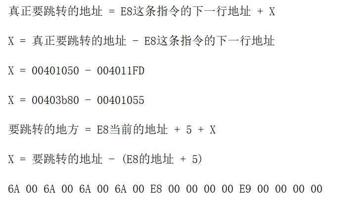 由于 call 指令和 jmp 指令后面跟的是我们想要调用的函数地址或者跳转的地址,那 E8 和 E9 后面跟的 4 个字节是不是就是这个地址本身呢?不是!E8 和 E9 后面跟的地址数据是需要转换得到的