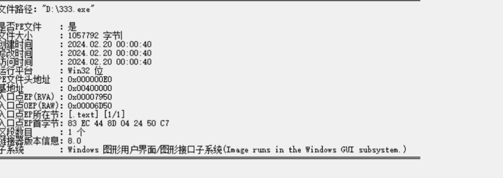 char* FilePath = (char*)"D:/Everything333.exe"; //打开的PE文件绝对路径