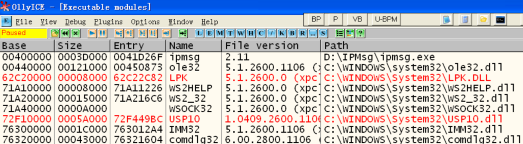 ,会发现一个 ipmsg.exe 和多个.dll(即模块)构成
