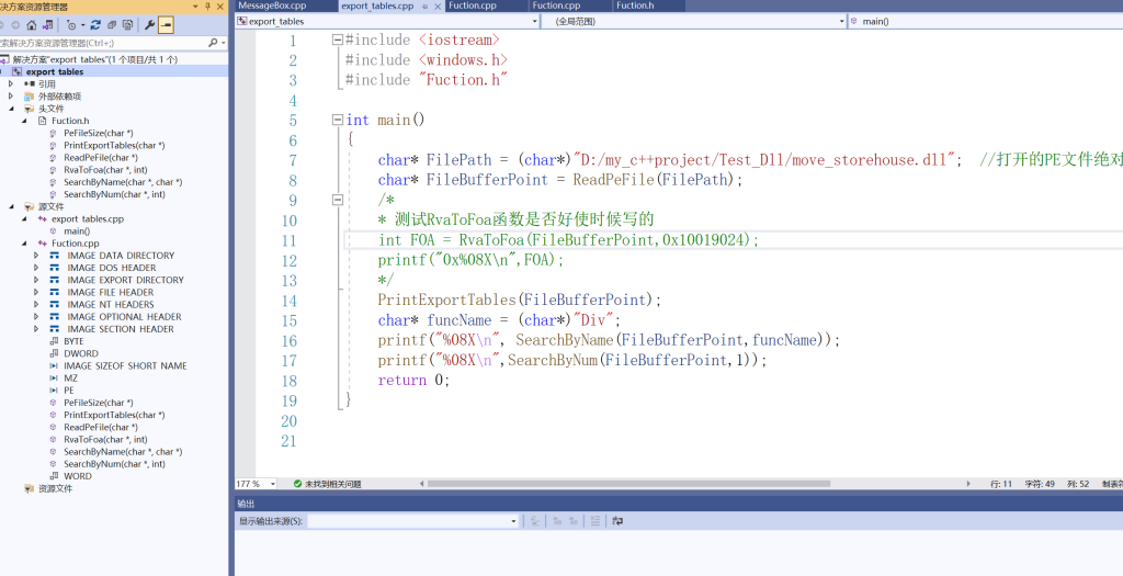 char* FilePath = (char*)"D:/my_c++project/Test_Dll/move_storehouse.dll"; //打开的PE文件绝对路径