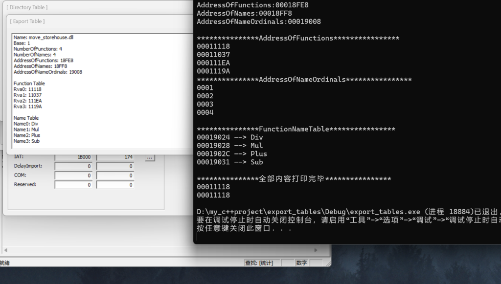 所以.dll 中应当有一个目录或者结构提供给.exe 文件,来记录.dll 中的函数有哪些,函数的起始地址等信息。所以如果.dll 或者.exe 文件想要给别的程序提供函数,就必须同时给别的程序一个“清单”,这个“清单”就是导出表