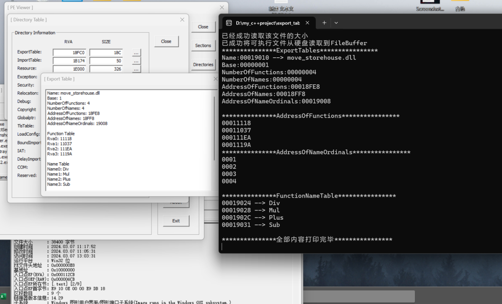 有些.exe 的导出表数据目录不是全 0,表示有此.exe 程序有导出表,即可对外提供函数;有些没有导出表,就不对外提供函数