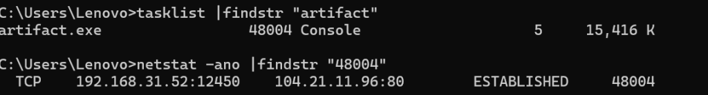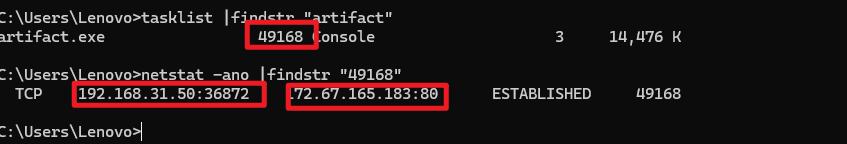 - 首先去获取一下 PID,然后根据 PID 去定位一下外连的行为,分析出这个的外连 IP 是 172.67.165.183