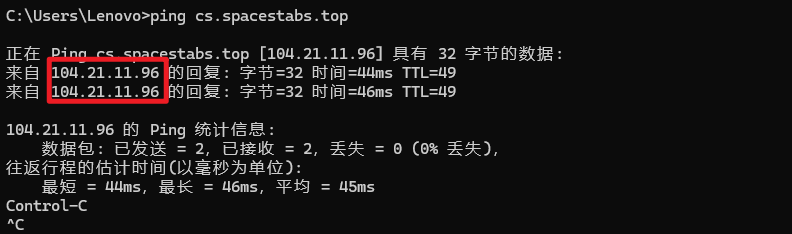 而这个外连 IP 就是 ping 我之前注册的那个域名的 CDN 的地址