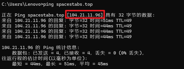 3.然后 ping 一下注册的域名看一下效果