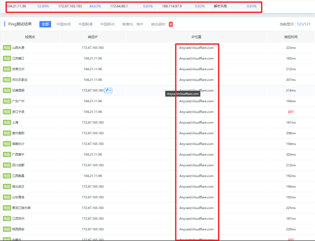 然后再超级 Ping 一下,确实都是 CDN 的节点,没有暴露自己 C2 服务器的真实 IP
