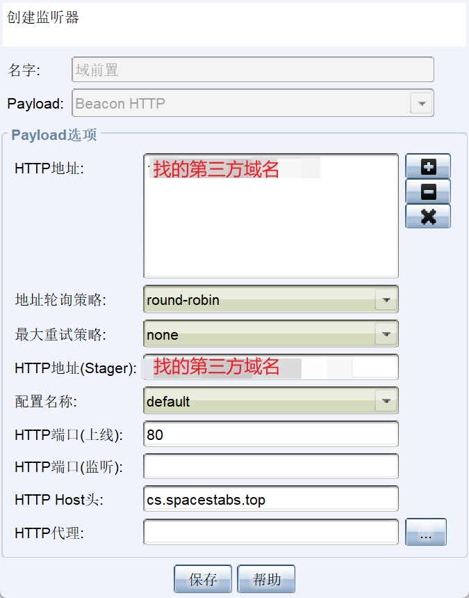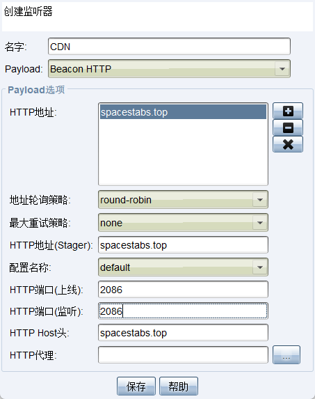 4.CS 上线,配置 listener,HTTP Host Header,必须填写自己的域名!
