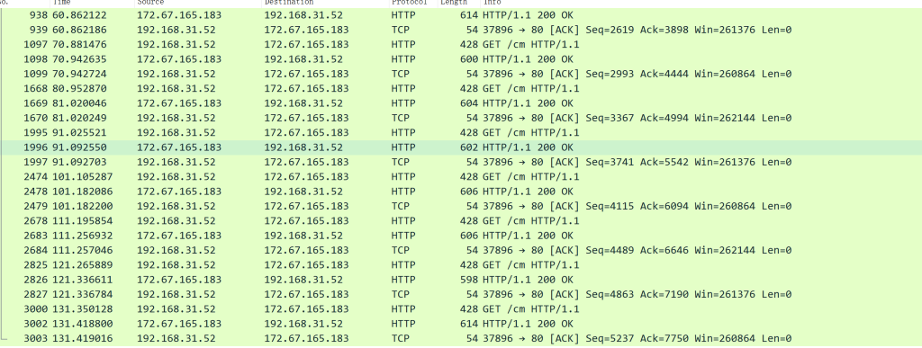 都没有暴露真实的域名和 C2 的地址,但其实肯定暴露了,因为用的并不是 HTTPS,而是拿 HTTP 做的实验,拿 Wireshark 分析一下确实还是可以看到的