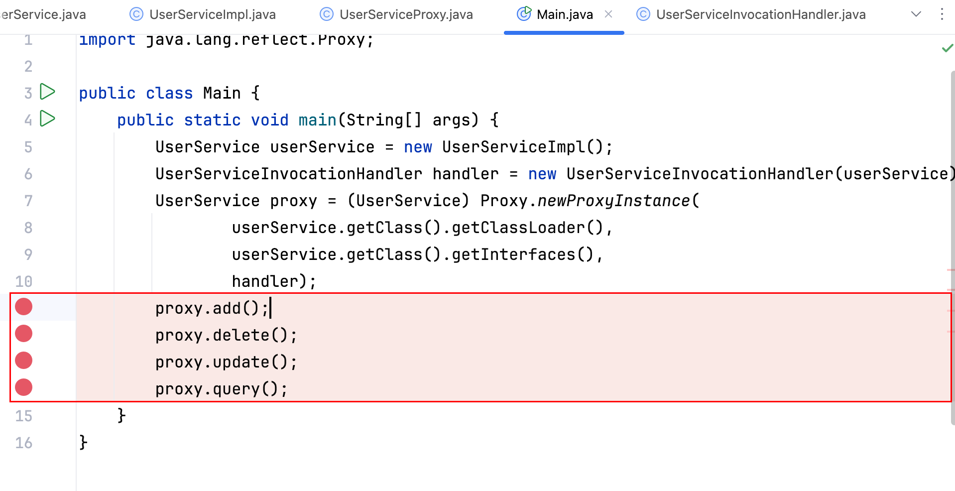 UserServiceInvocationHandler handler = new UserServiceInvocationHandler(userService);