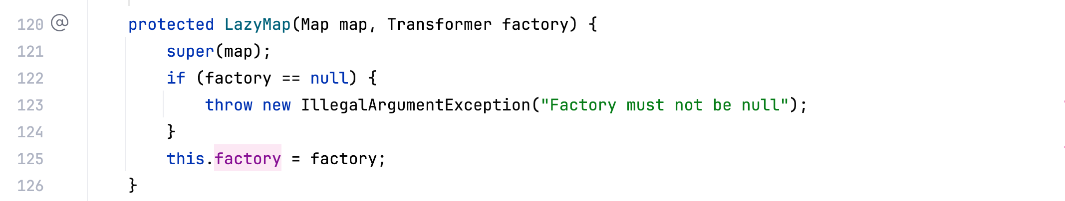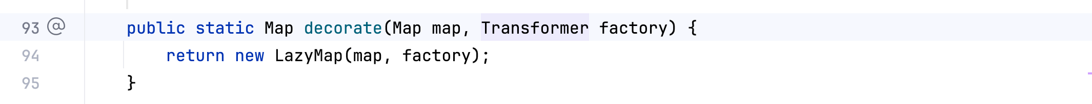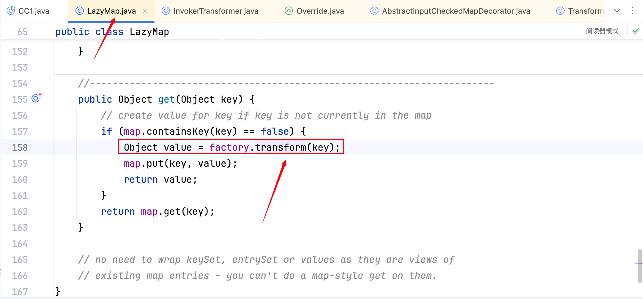 而 LazyMap 中也调用了一个 transform 函数,如下–>