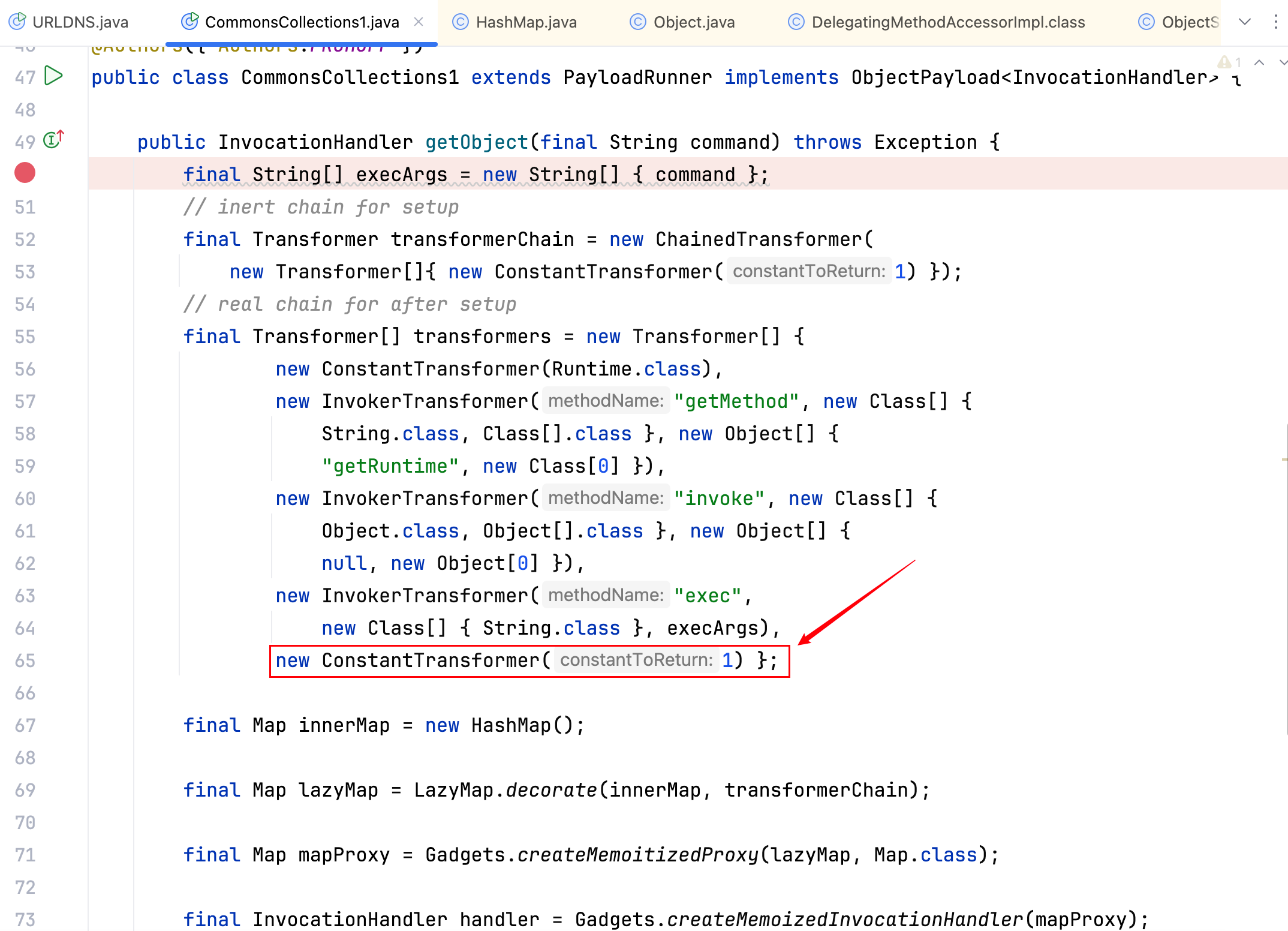 2.还有一点,也是后来看到 P 神的文章,ysoserial 中的 Transformer 数组,为什么最后会增加一个