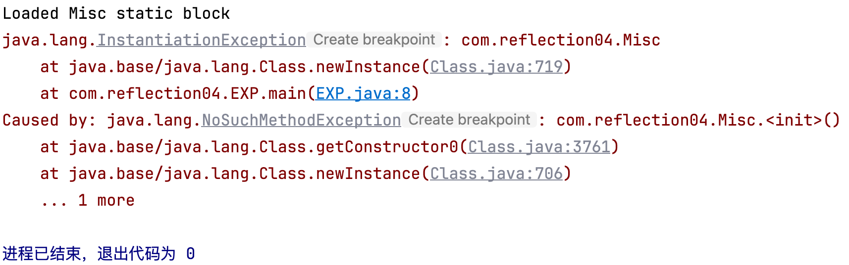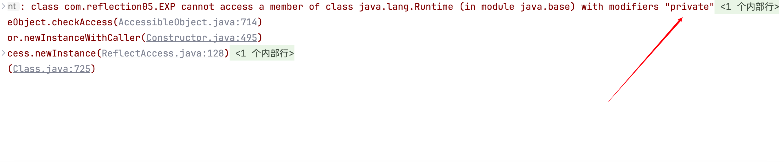 这就是写 EXP 时候,使用 newInstance 方法去实例化某些类会报错的原因,要么是使用的类没有无参构造函数,要么是该类构造函数是私有的,java.lang.Runtime