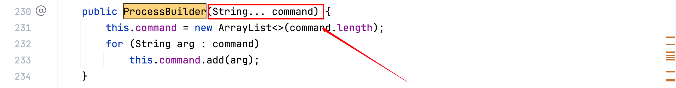 ,很简单然后就去跟一下这个 ProcessBuilder 这个类,平时也会去用里面的 start()方法去执行命令。为啥要选这个类,因为它的构造方法都是带参数的,详情见下图–>