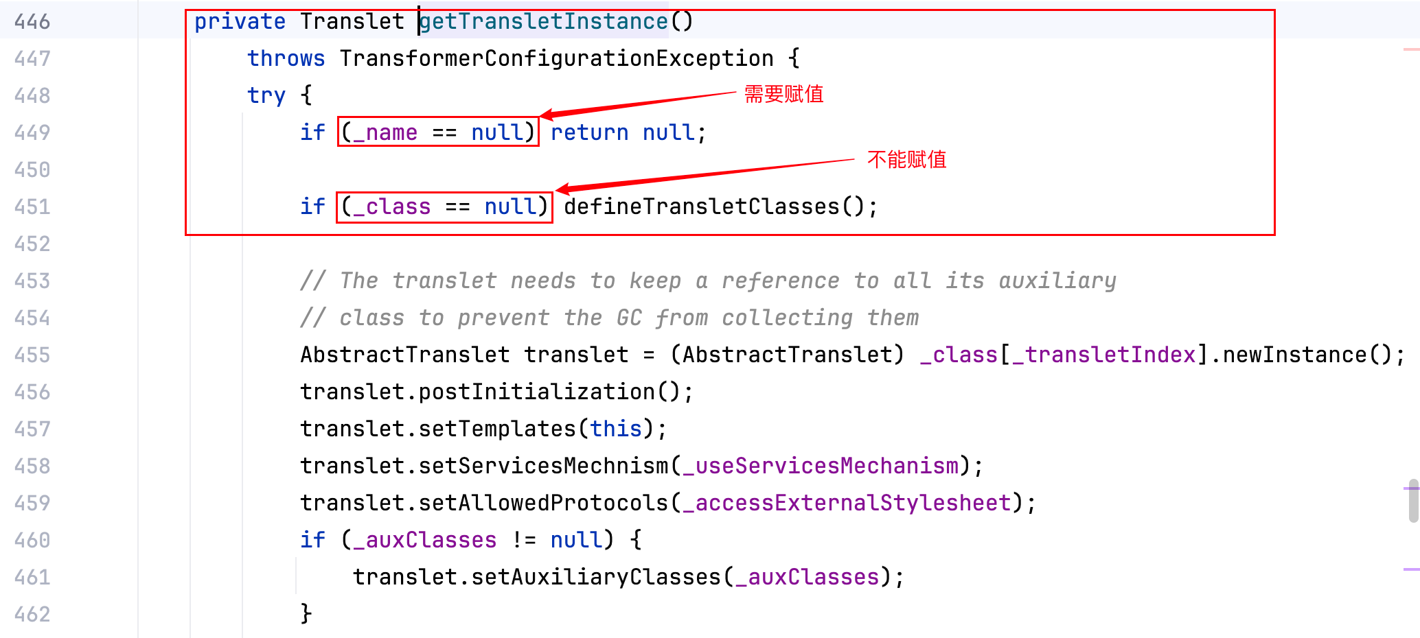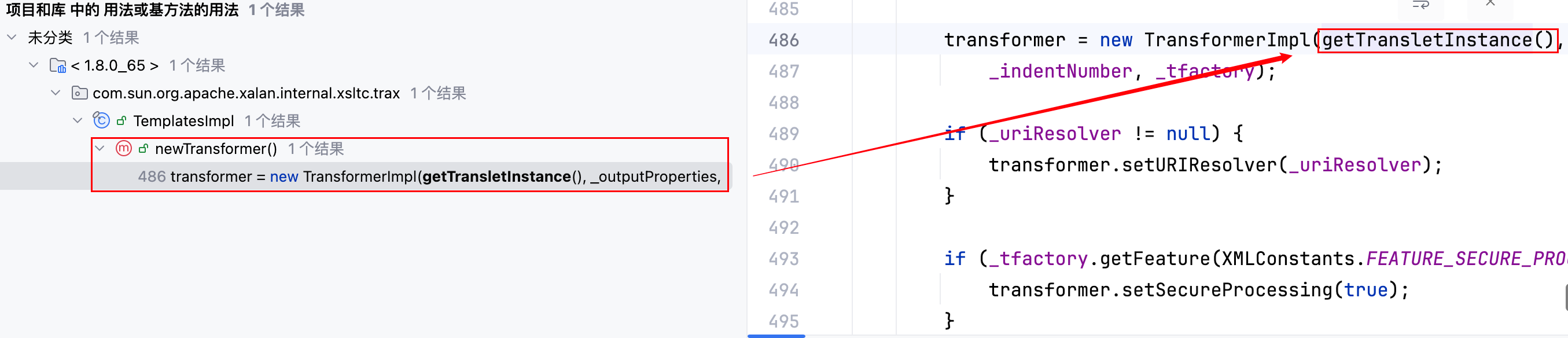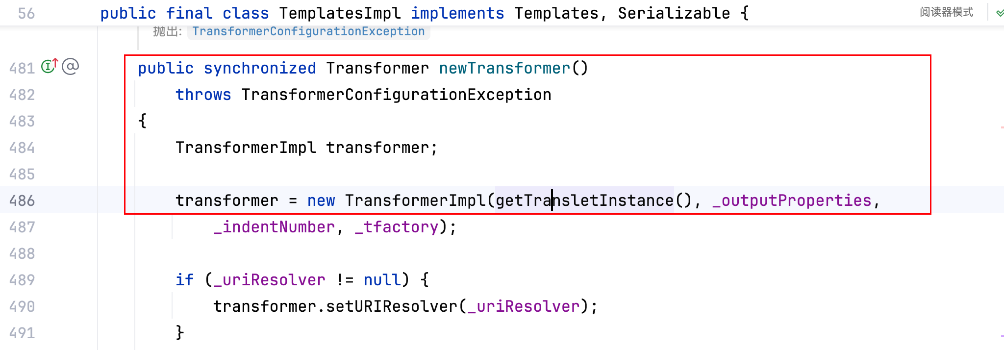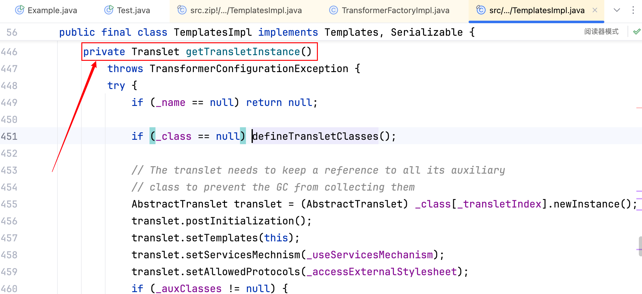 OK 毫无疑问优先去选取第三处,而它这个方法(getTransletInstance)也是 private 的,如下–>