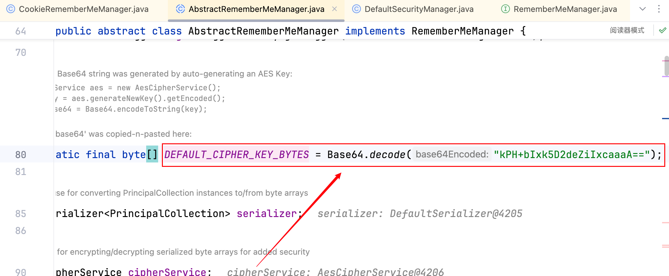 ,可见 Key 是固定的,密钥暴露了那么攻击者就可以伪造一个 rememberMe 字段。