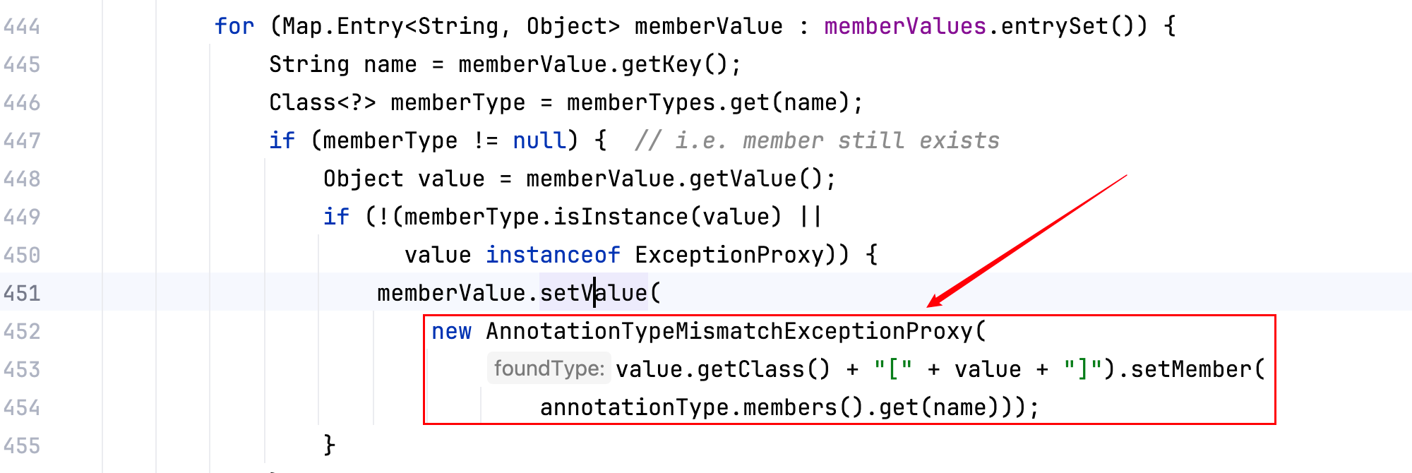 最初其实是在 CC1 中被用到的,为了解决 AnnotationInvocationHandler 类的 readObject 方法中memberValue.setValue(xxx)