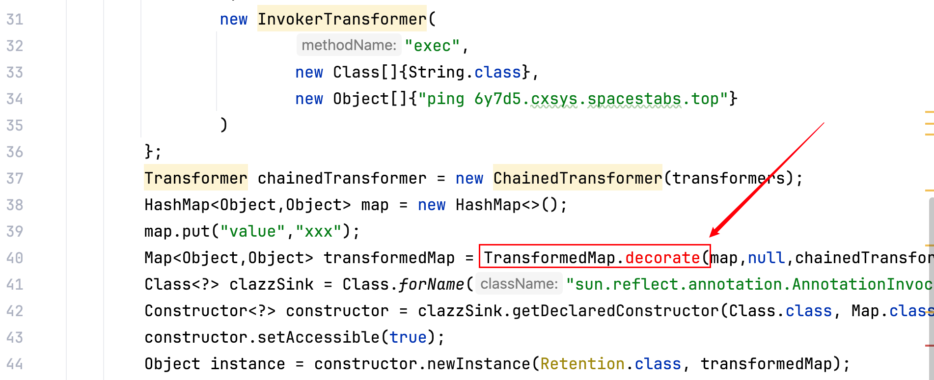 它没有那么多杂七杂八的逻辑,因此直接将TransformedMap.decorate(map,null,chainedTransformer);