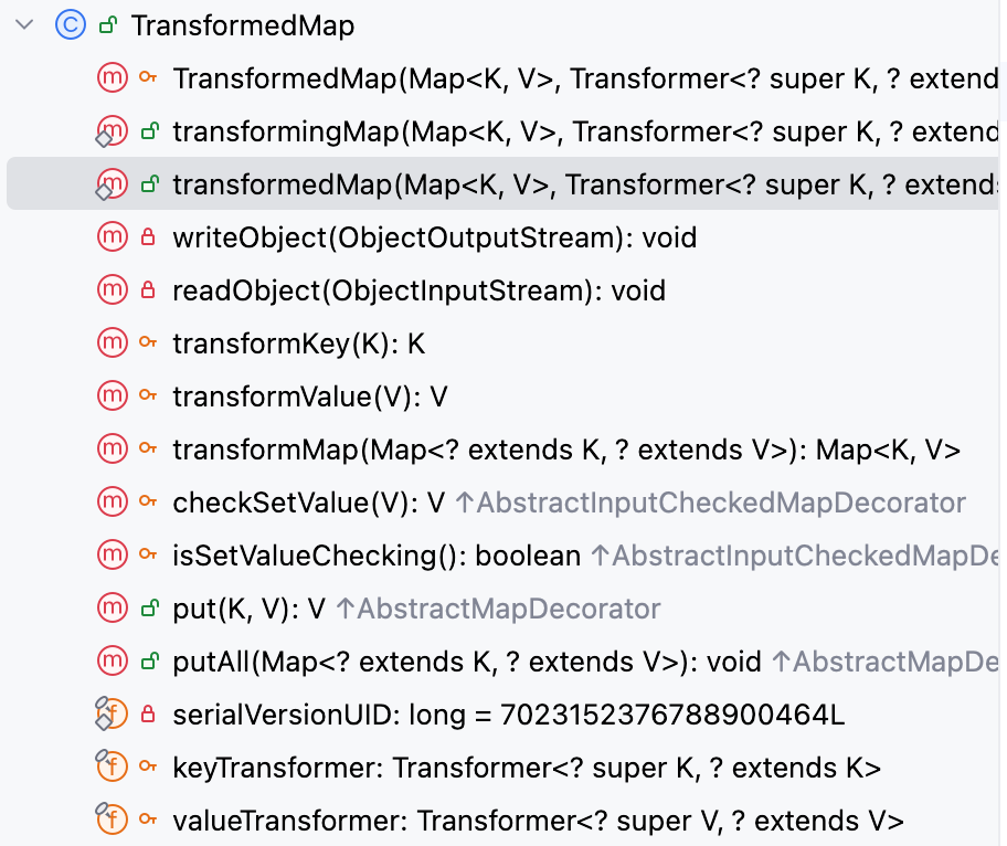 查看 TransformedMap 类的 Structure,可以发现在commons-collections4 4.0