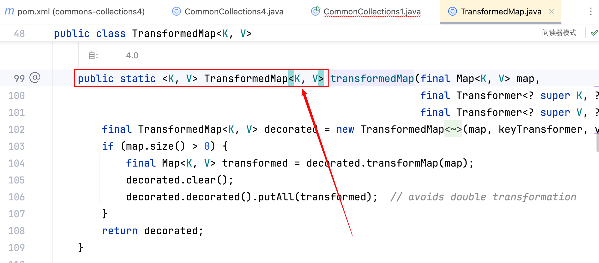 版本的漏洞做了修复,所以猜测commons-collections4 4.0