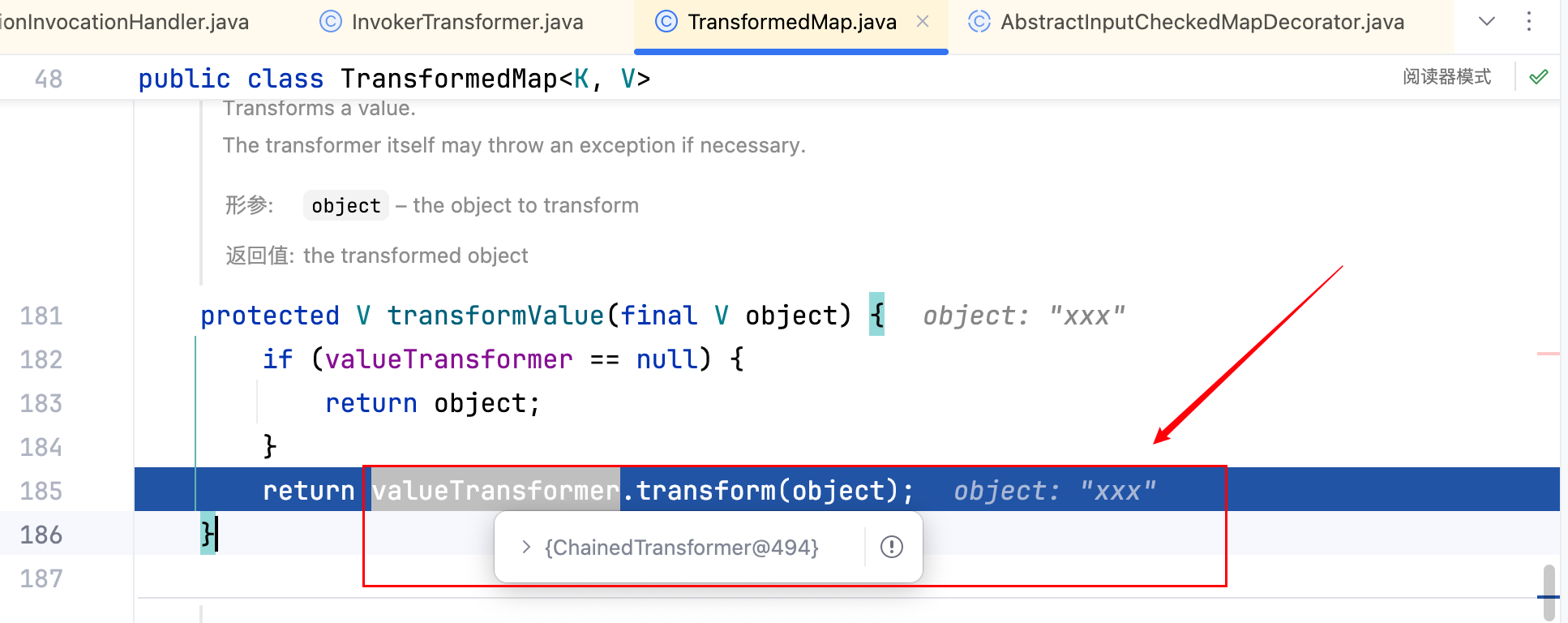 改为TransformedMap.transformedMap(map,null,chainedTransformer);