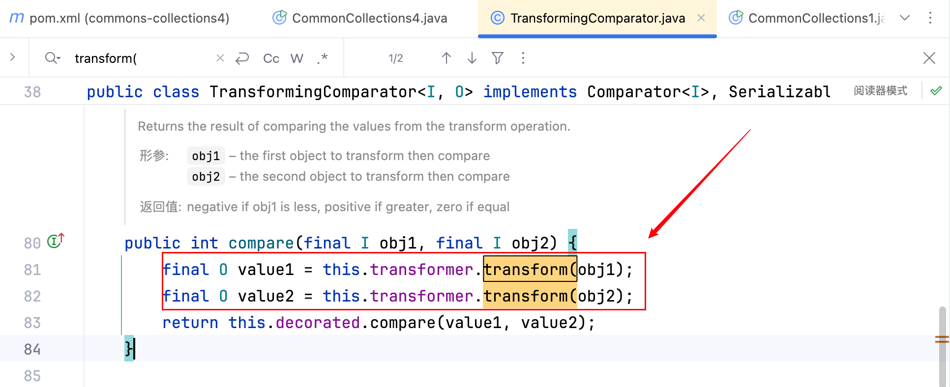 TransformingComparator transformingComparator = new TransformingComparator(instantiateTransformer);