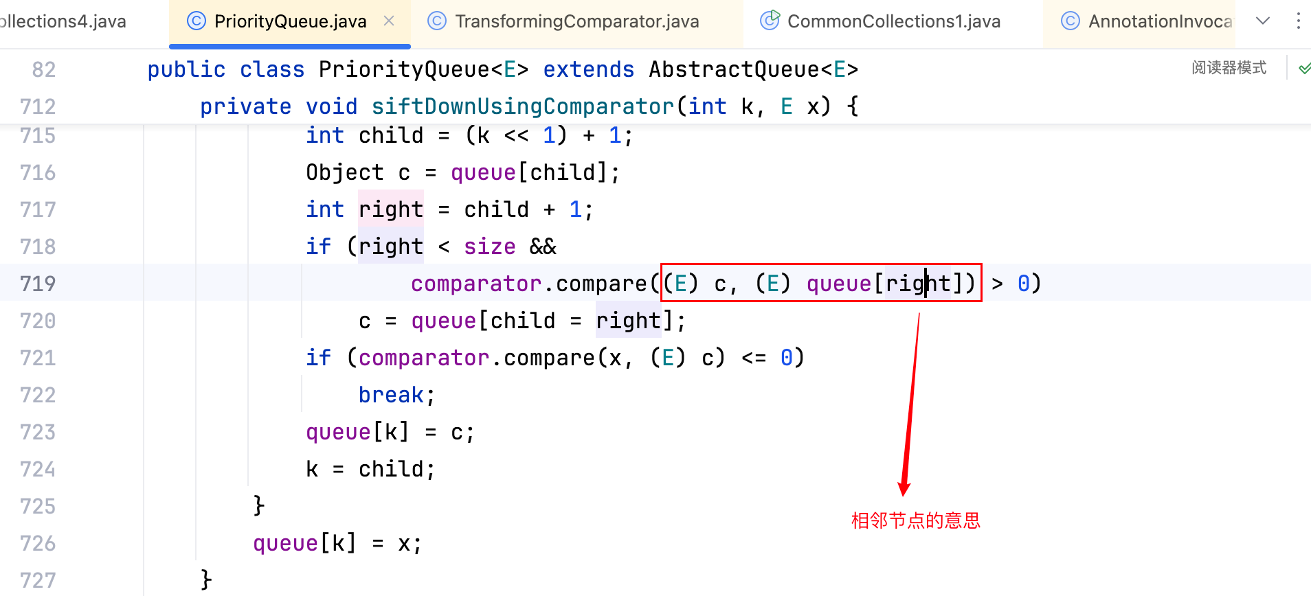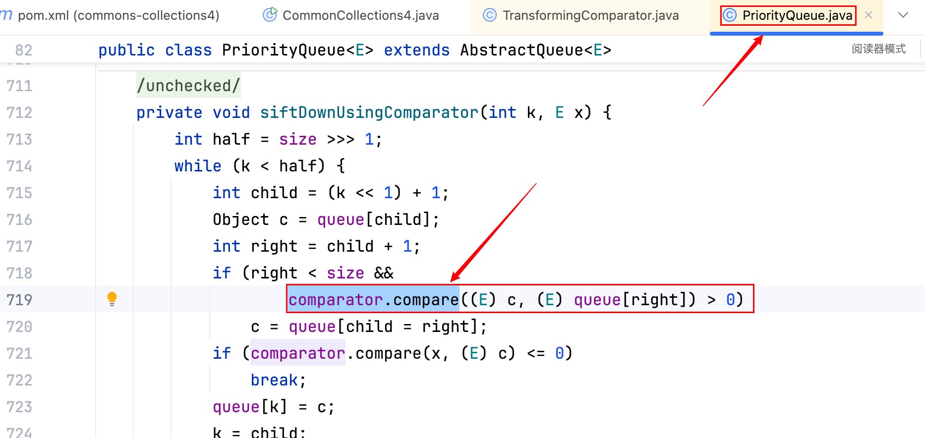 ),接着会调用自定义的比较器(也就是siftDownUsingComparator()