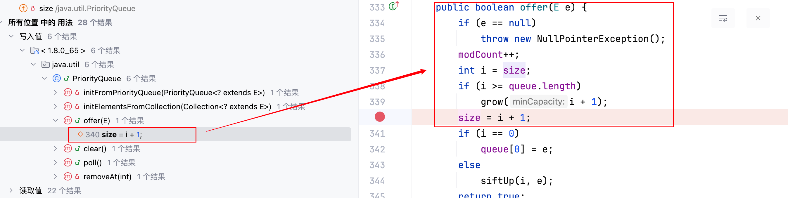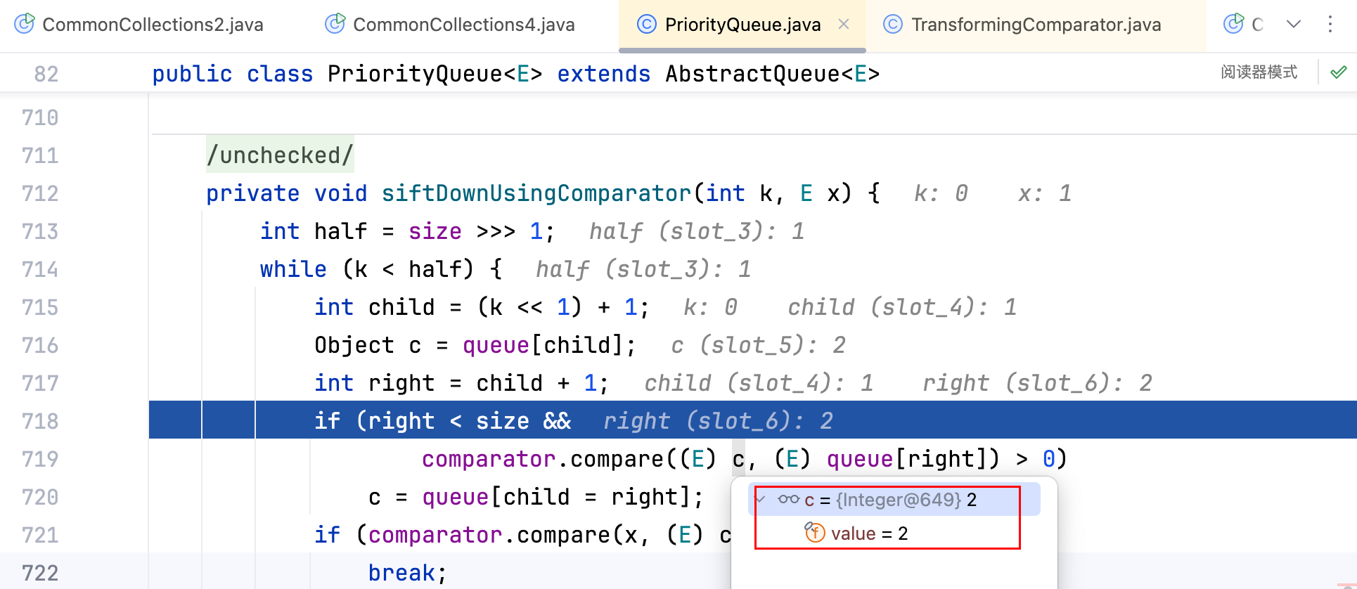 而其中 c 变量的值即是一开始的priorityQueue.add(2);