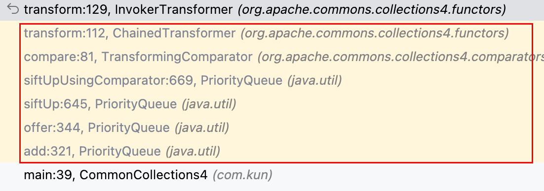 这两条链的 EntryClass 与 Gadget 一模一样,区别在于 CommonsCollections2 的 Sink 是InvokerTransformer.transform()