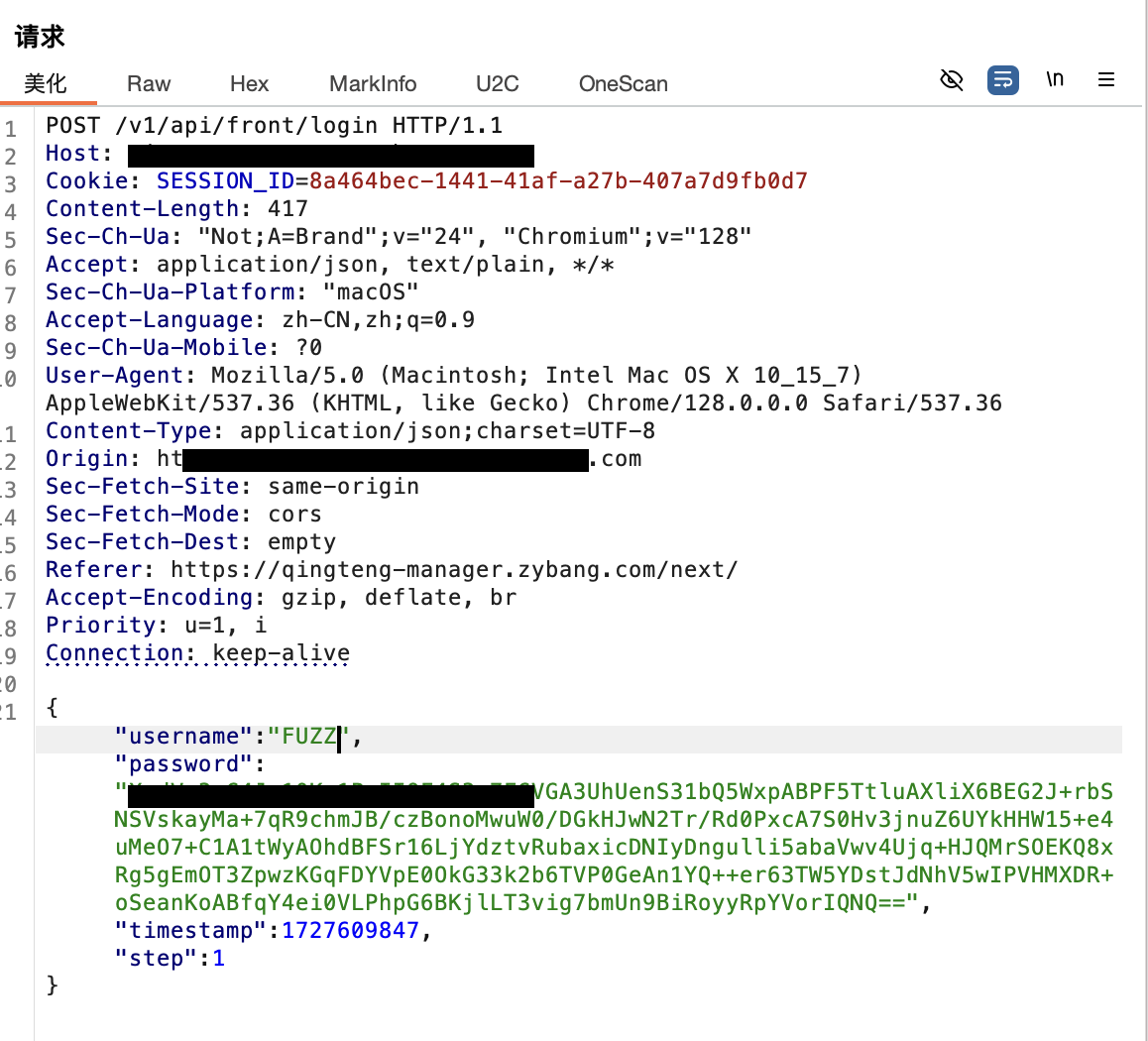 5.POST 扫描,这里只推荐用数据包去扫描,将数据包内容通过 Burp 等工具拦截,再想去 Fuzz 的地方添加好标志位,然后使用如下语句开始进行 Fuzz