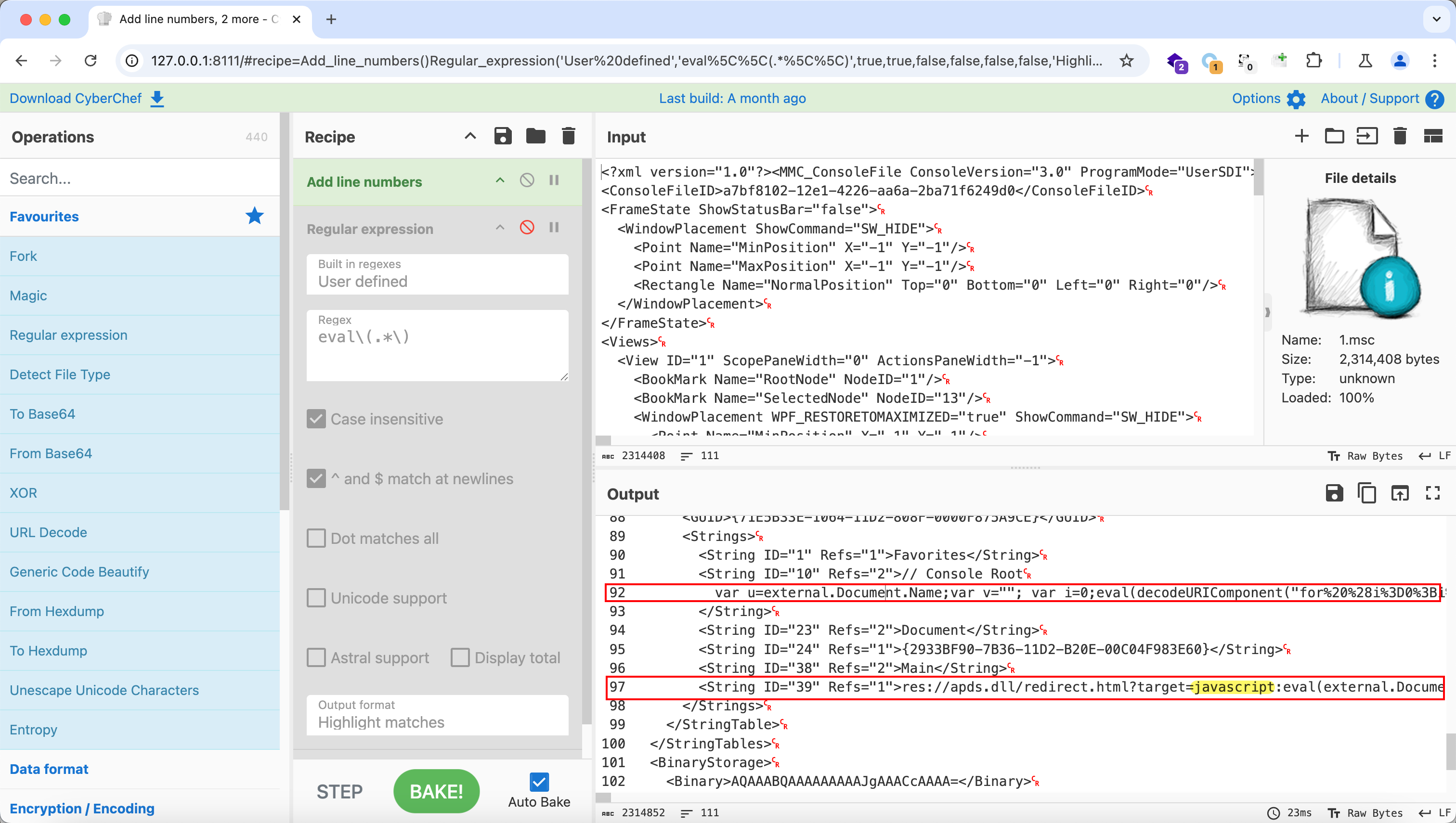 然后再去用 Cyberchef 将原始的那个 msc 文件中将 CONSOLE_TREE