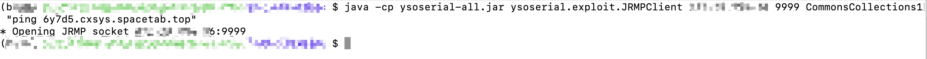 后续使用 ysoserial.exploit.JRMPClient 这个 Payload 尝试攻击此端口–>